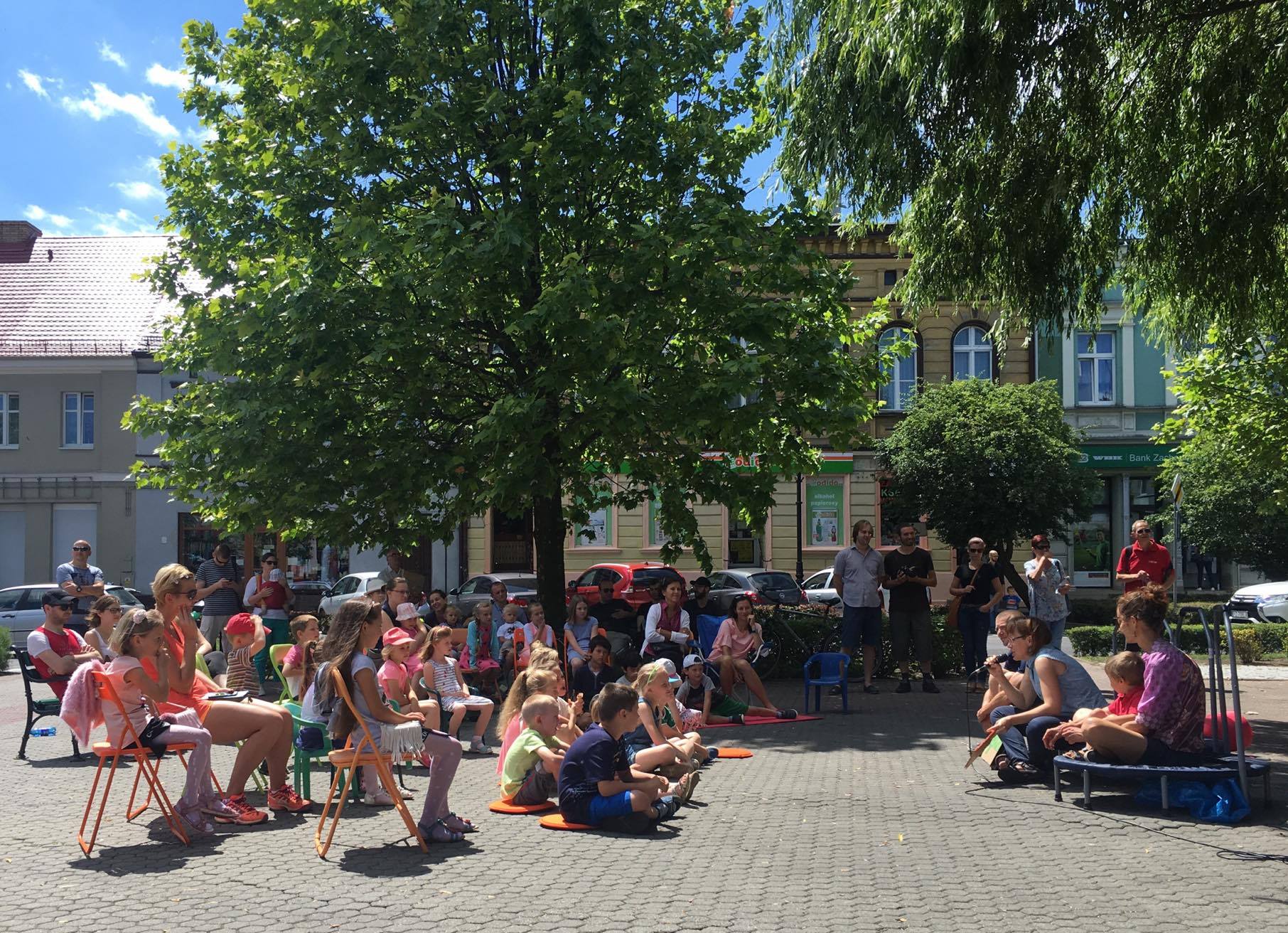 Miniona sobota i niedziela na pobiedziskim Rynku obfitowały w wiele atrakcji przygotowanych z myślą o tych młodszych i starszych mieszkańcach gminy. Z nastaniem ciemności w sobotę na Rynku rozpoczął się seans Kina Letniego filmem „Młodość” w reżyserii Paolo Sorrentino. Niedzielny poranek rozpoczął się od przedstawienia dla dzieci na Rynku przygotowanego przez Literackie Pobiedziska. Kolejne wydarzenia to teatralna uczta dla mieszkańców zrealizowana przez Pobiedziski Ośrodek Kultury. W ramach corocznie organizowanego cyklu Teatr w Małym Mieście gościliśmy na pobiedziskim Rynku dwa teatry, Teatr ASZ przygotował widowisko dla najmłodszych, a Teatr Usta Usta przedstawił spektakl „Cykl“ w reżyserii Wojciecha Wińskiego. Była to nowatorska forma teatralna w naszym mieście, spektakl multimedialny, łączący instalacje przestrzenne, grę aktorską oraz animacje komputerowe. Rozgrywał się na Rynku wokół obracającego się ogromnego sześcioboku. Odnosił się do regularności, powtarzalności elementów codzienności oraz natręctw marzeń sennych. Przedstawienie składało się z cyklu obrazów.