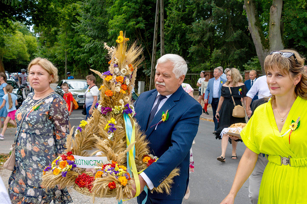 Chlebem z tegorocznego ziarna częstowali przybyłych na uroczystość: Burmistrz Miasta i Gminy Pobiedziska Ireneusz Antkowiak, Przewodniczący Rady Miejskiej Gminy Pobiedziska Józef Czerniawski, a także ks. Dominik Poczekaj proboszcz parafii Niepokalanego Serca Najświętszej Maryi Panny w Jerzykowie, który wcześniej odprawił też Msze Świętą oraz Sołtys Kołaty Monika Glińska.