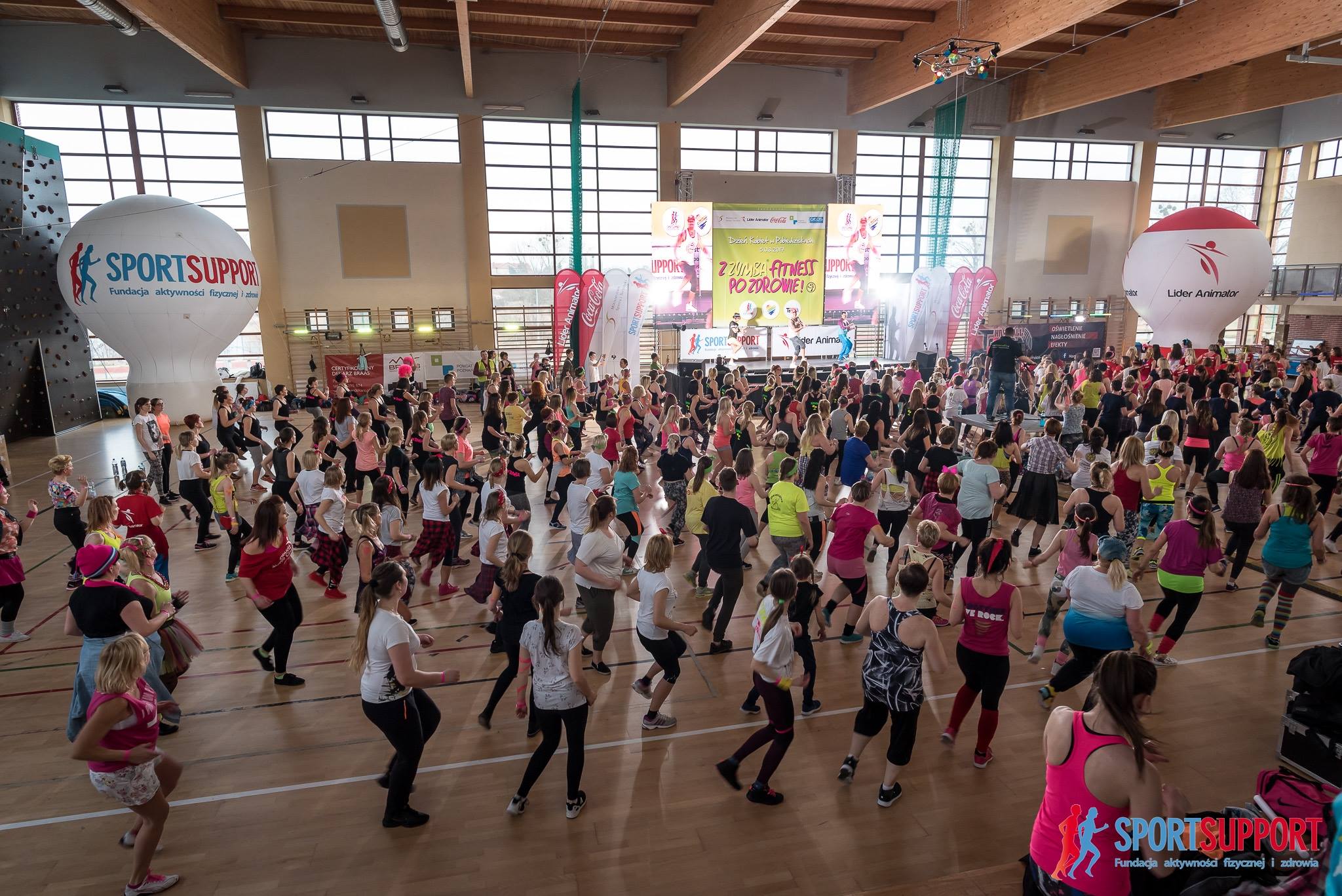 Dzień Kobiet w rytmach muzyki i tańcząc Zumbę? Oczywiście, można, a nawet od kilku lat w Pobiedziskach wręcz trzeba. Instruktorka Zumby – mieszkanka gminy Pobiedziska – Joanna Wolniewicz organizując maratony Zumby z okazji Dnia Kobiet zaprasza kilkaset Pań do wspólnej zabawy, którą ze sceny prowadzą dla nich wyłącznie Panowie. Wszak to z wiadomej okazji, i panowie instruktorzy z całej Polski nigdy nie odmawiają. I tak tez było 5 marca, a do tego blisko 500 uczestniczek, zabawa, efekty świetlne i niesamowite przeżycia. Zumba od kilku lat nierozerwalnie kojarzy się w Polsce z Pobiedziskami, gdyż jak to mówią uczestniczki jest tutaj niepowtarzalna atmosfera i profesjonalizm organizacyjny. Tym razem w Zespole Szkół w Pobiedziskach wydarzeniu „Z Zumbą fitness po zdrowie” patronowali i organizowali: Fundacja Sport Support, Lider Animator, Ministerstwo Sportu i Turystyki, Coca Cola, Haniball Team oraz Stowarzyszenie „Dla Ciebie”.